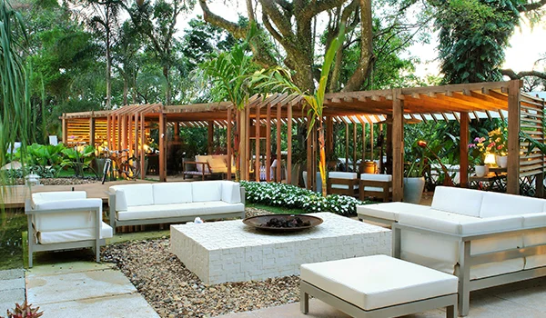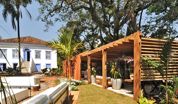 Pergolados são estruturas feitas com pilares ou mesmo vigas de madeiras vazadas para impedir que no local haja incidência direta do sol.